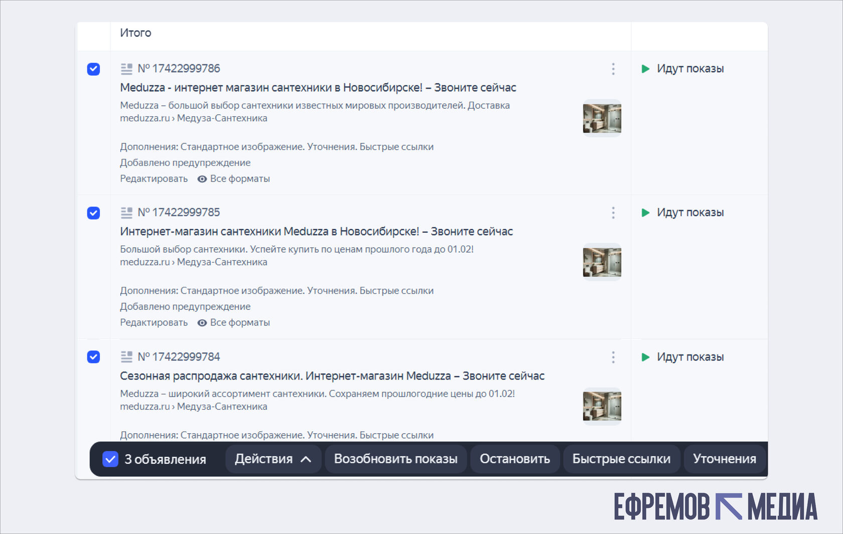 Есть вопросы? Получите консультацию или аудит от экспертов Ефремов Медиа.