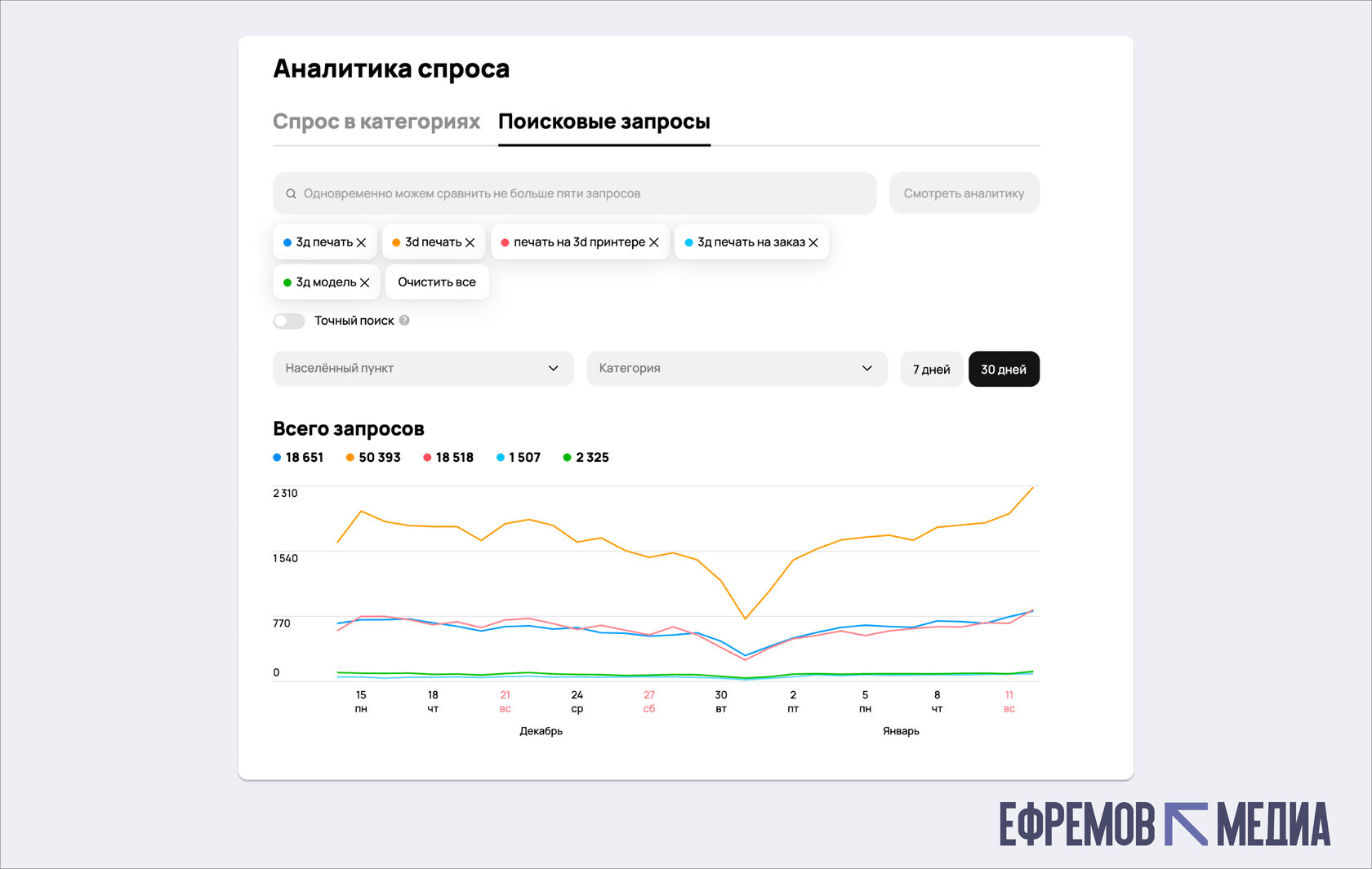 Данные обновляются с задержкой. Вчерашние цифры часто отражают позавчерашние тренды. Если вы видите резкий скачок интереса сегодня, на самом деле он мог начаться 2-3 дня назад, и рынок уже частично насытился конкурентами.