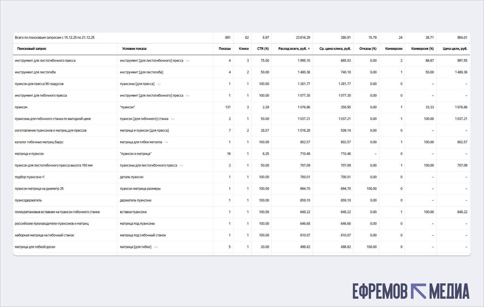 Инструмент для быстрого решения. Отчет — это не просто красивая статистика. Это план действий: какую минус-фразу добавить, какой таргетинг выключить, куда переместить бюджет. Специалист может всё это сделать за минуты, не дожидаясь консультации агентства.