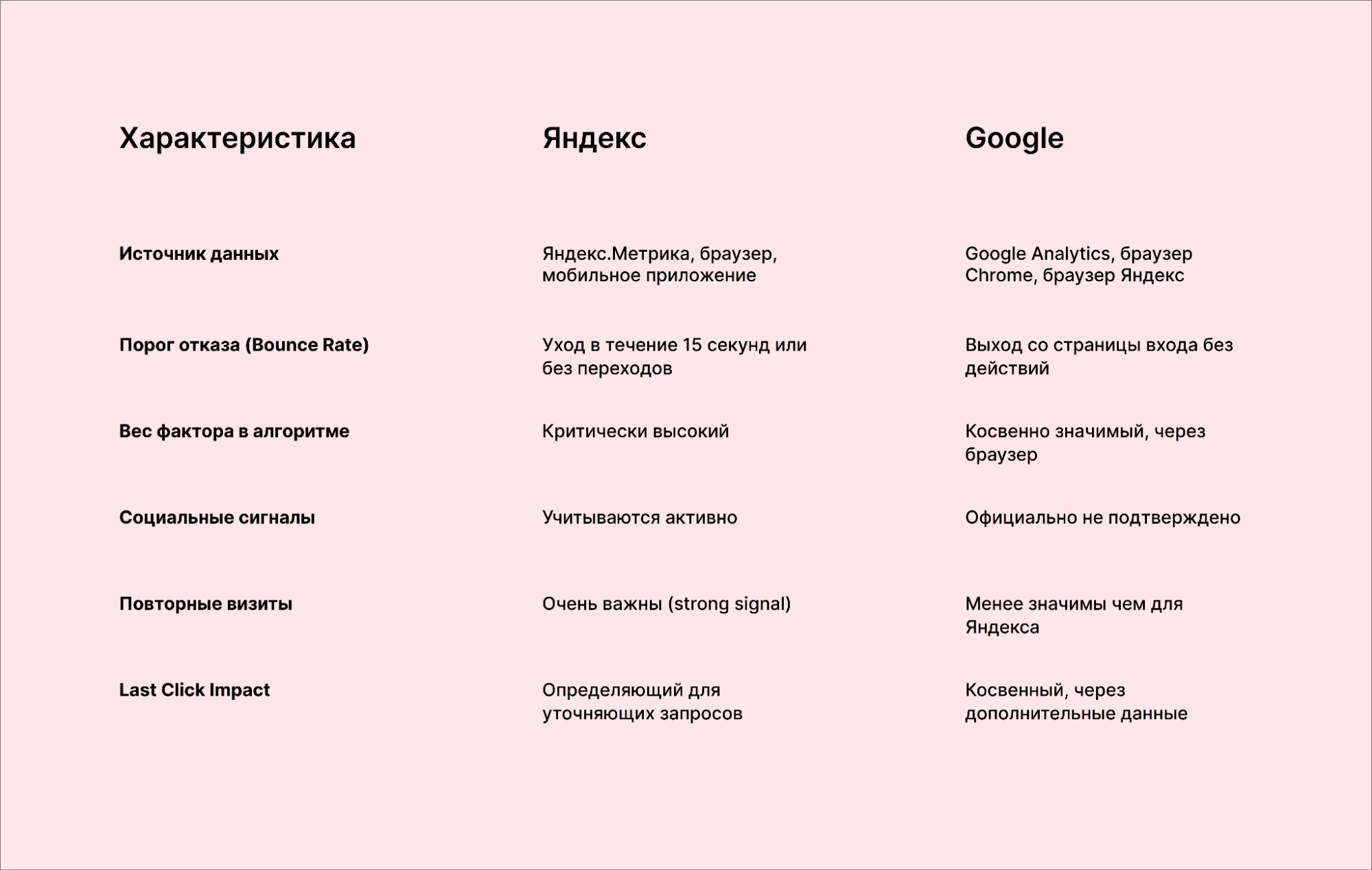 Разница между Яндексом и Google в подходе к поведенческим факторам